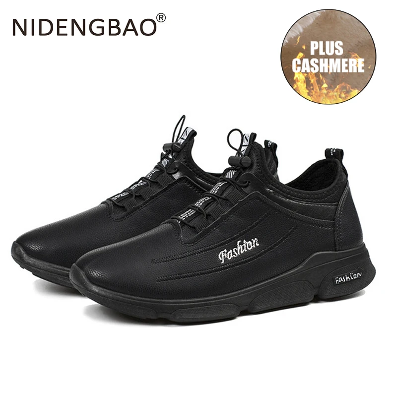 .Gallery of NIDENGBAO Men Running Shoes Short Fur Comfortable Sport Shoes For Male Waterproof Outdoor Walking Sneakers Black Red Size 39-44
